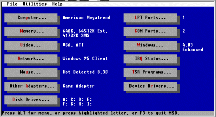 MSD est un grand classique DOS, (il est apparu avec Windows 3.1 ) mais il n'est plus installé par défaut avec Windows 95/98. Il est cependant livré sur le CD, vous le trouverez dans le dossier \Tools\0ldMsDos. Le programme peut être chargé dans une fenêtre DOS sous Windows, mais la totalité des informations est réservée au mode MS-DOS.
